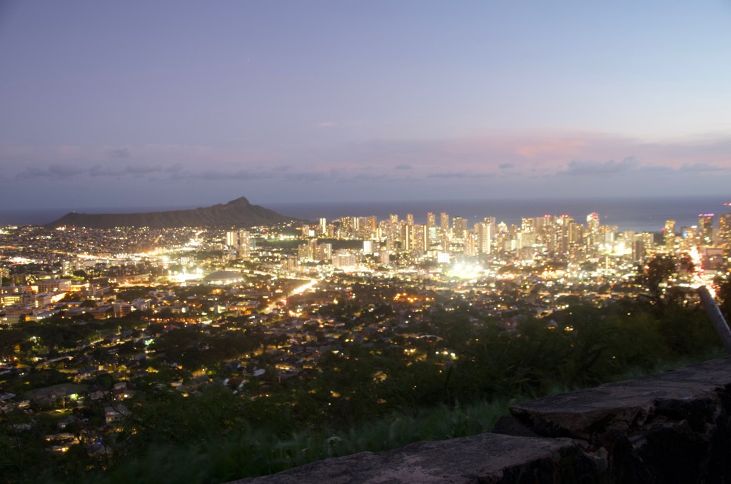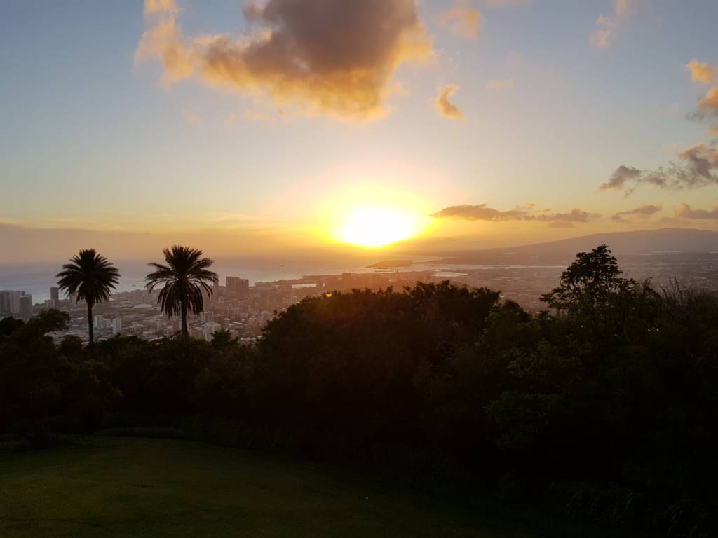 Den Abschluss bildete der Sonnenuntergang auf dem Mount Tantalus Lookout oberhalb von Waikiki.