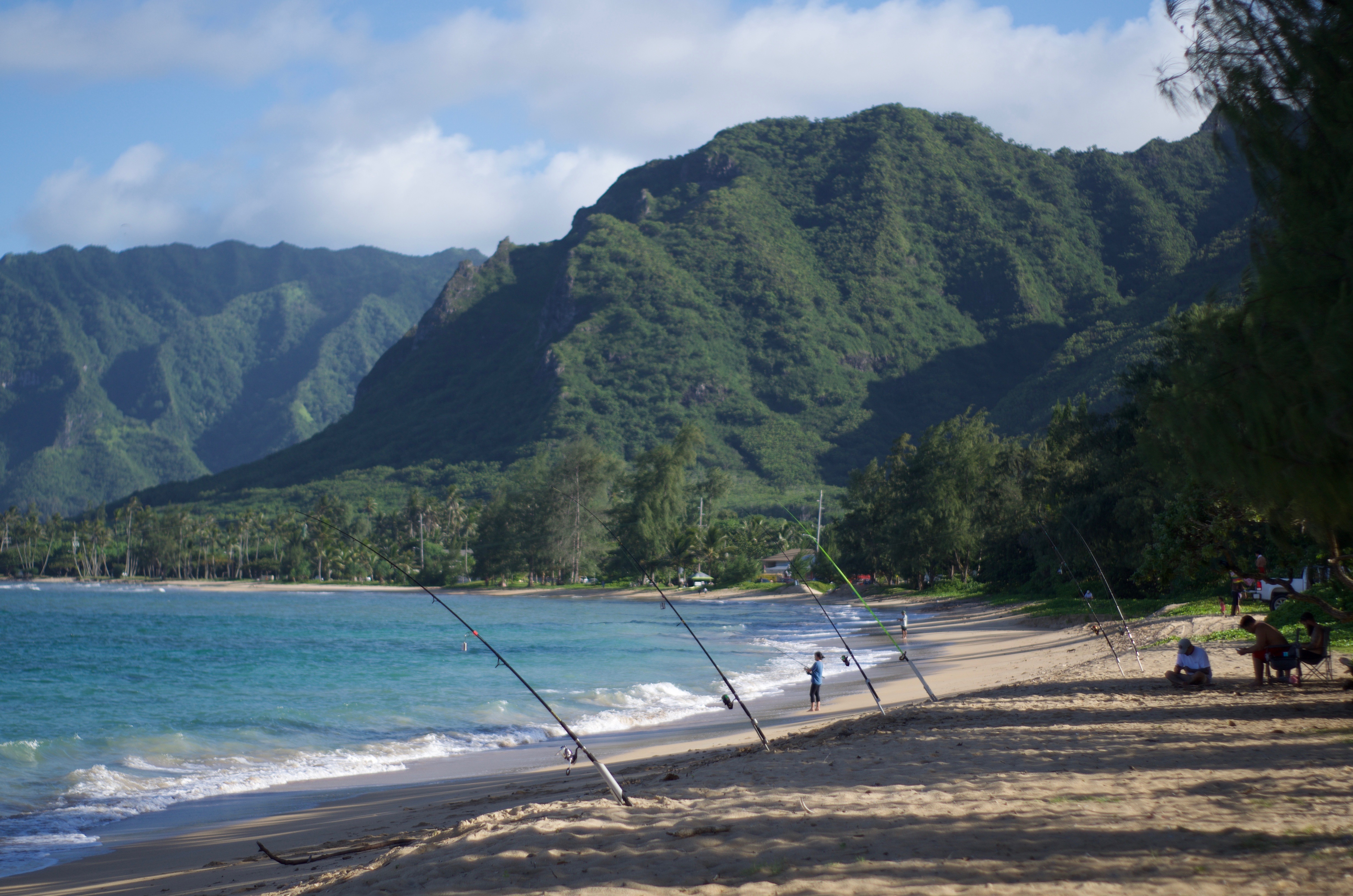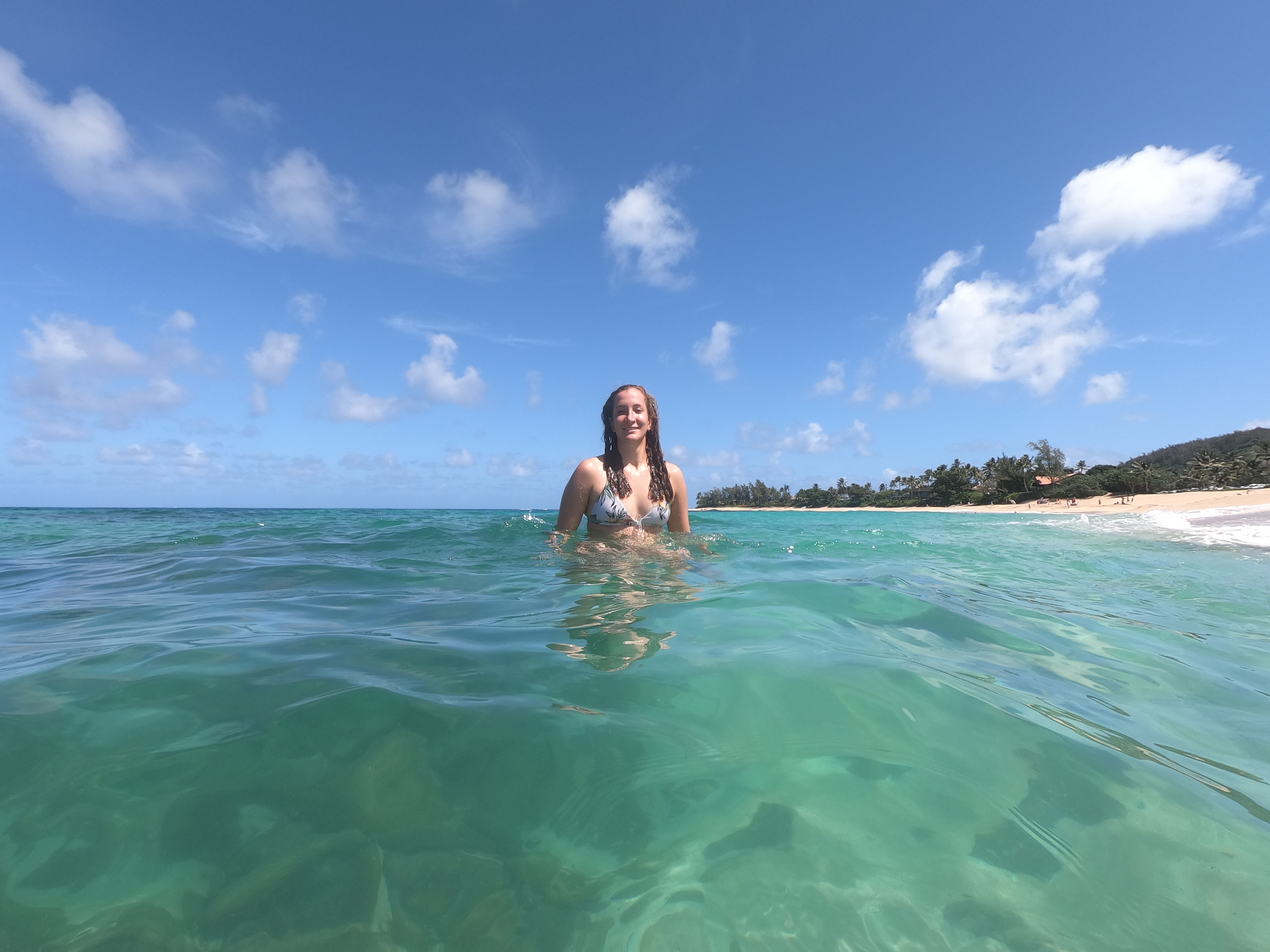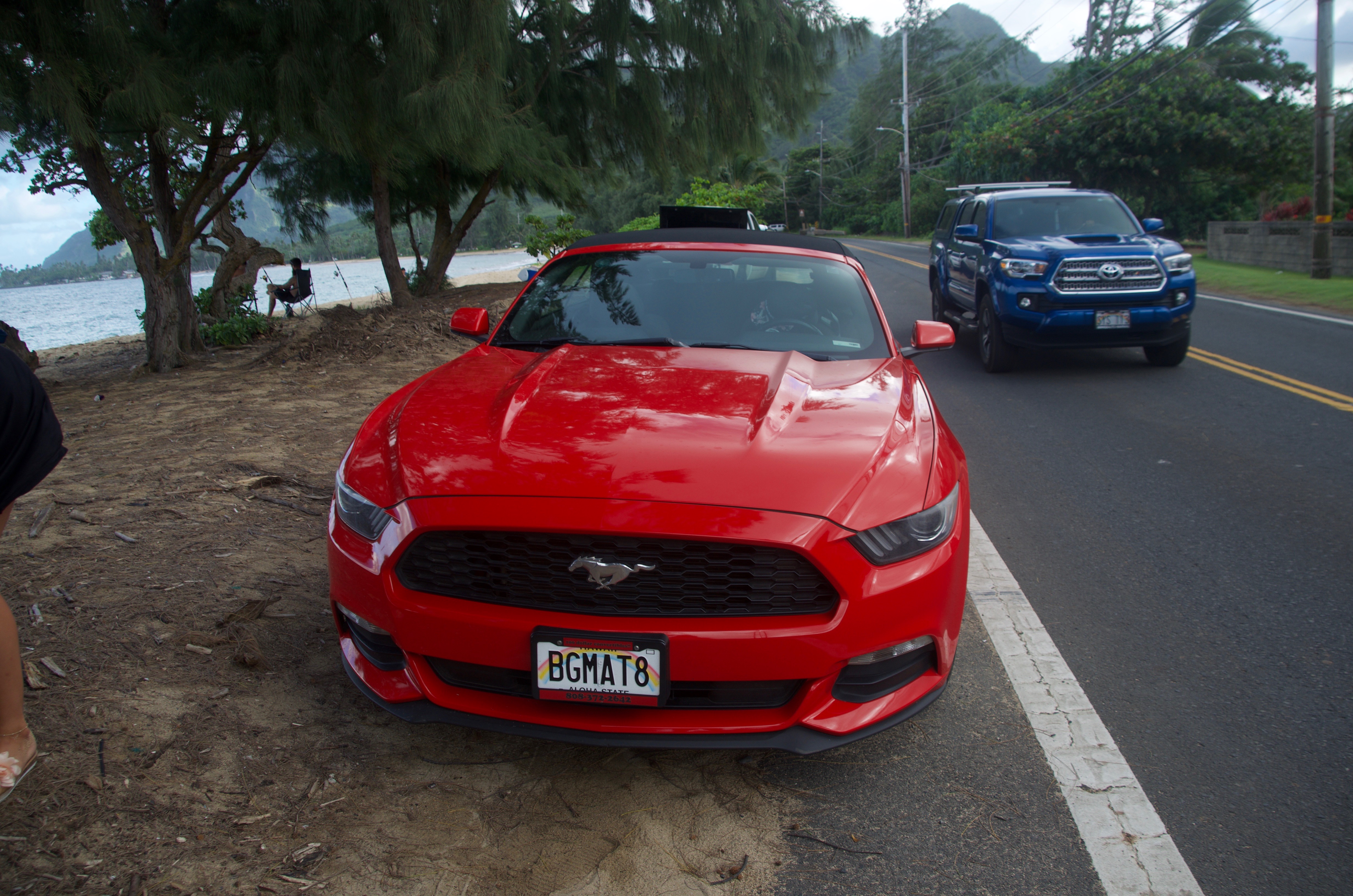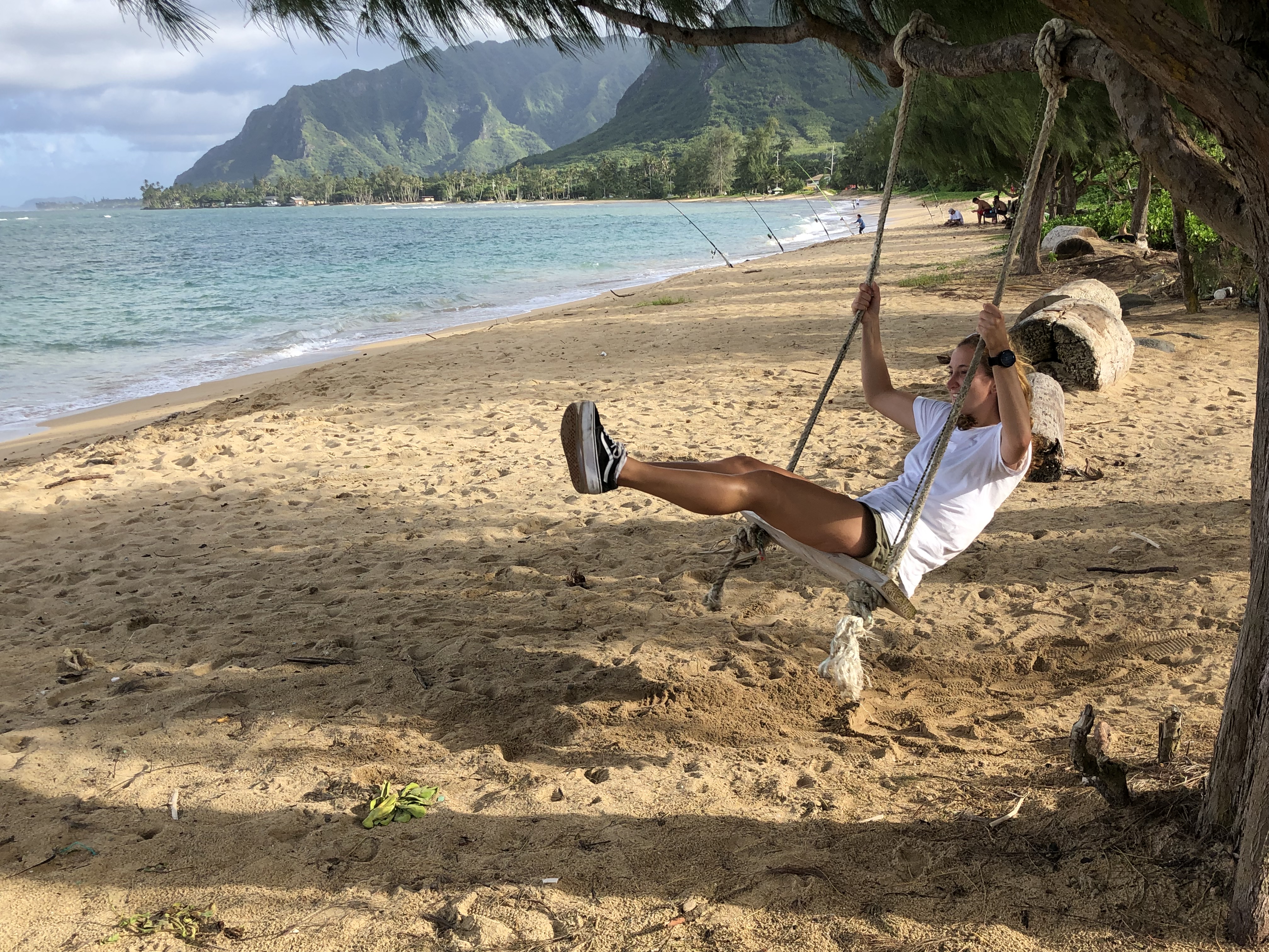 Mit Freunden und einem roten Mustang Cabrio (das Kennzeichen am besten nicht all zu genau beachten) als Gefährt ging es wieder Richtung Norden. Diesmal allerdings nur für einen Tagesausflug. Erster Stopp war Sunrise Shack. Dort gab es eine lecker Smoothie-Bowl für jeden von uns. Nächster Halt war Sunset Beach, um die Bräune etwas aufzufrischen. Nächstes Must-have waren natürlich – richtig, Garlic Shrimps. Auf dem Rückweg Richtung Honolulu sind wir die Ostküste entlanggefahren und haben dort nach einer der vielen Schaukeln am Straßenrand Ausschau gehalten.